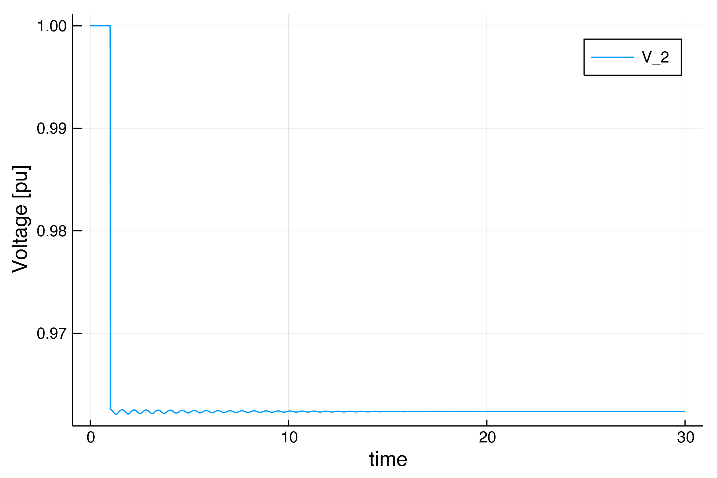 plot(volt, xlabel="time", ylabel="Voltage [pu]", label="V_2")